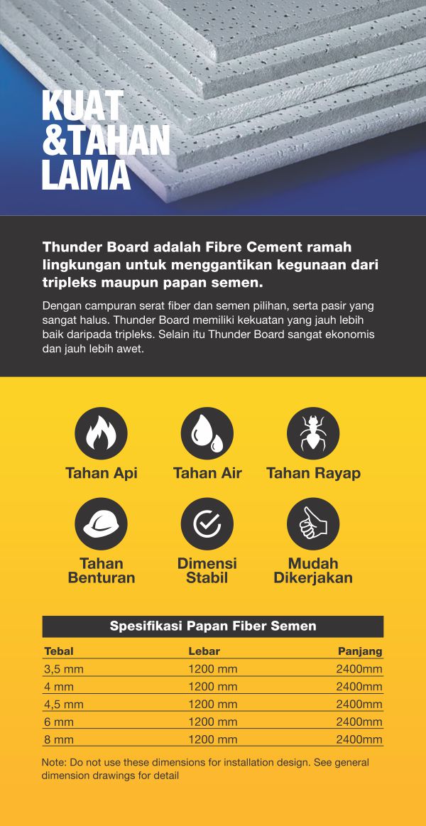 Thunder Board adalah Fibre Cement ramah lingkungan untuk menggantikan kegunaan dari tripleks maupun papan semen.