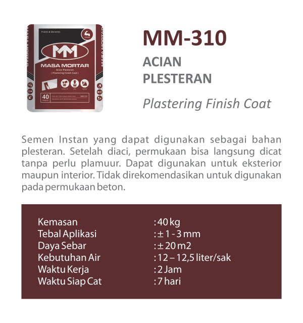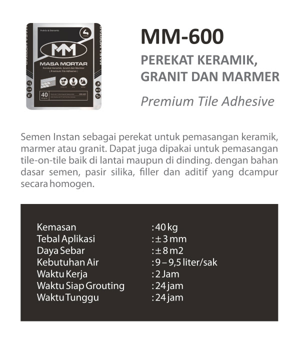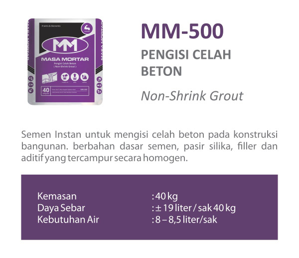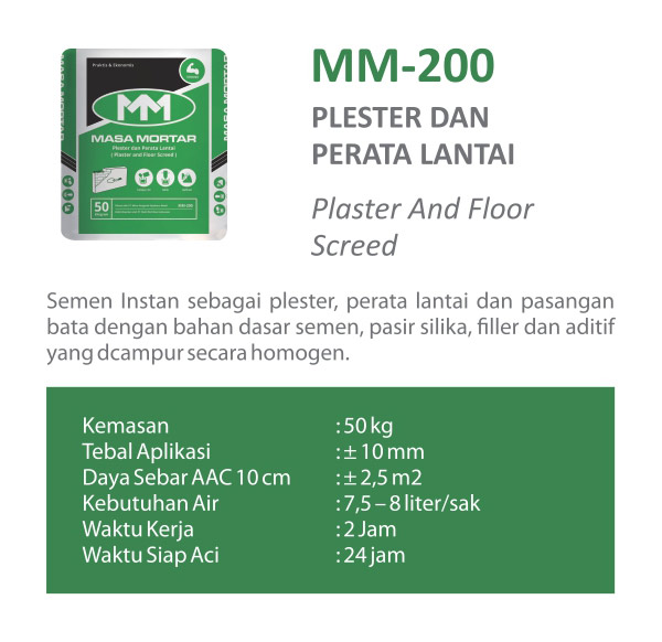 Masa Mortar adalah Pre-Mixed mortar berupa semen bubuk siap pakai untuk menggantikan material konstruksi tradisional (Mortar Konvensional) sehingga dapat menghemat penggunaan bahan.